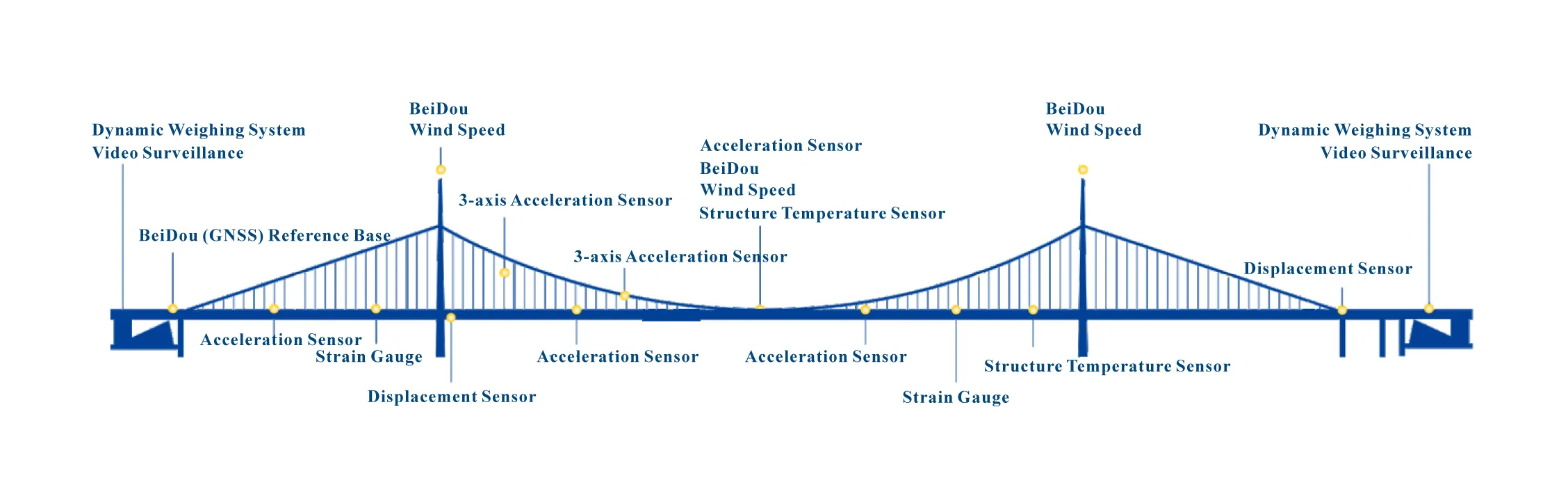 ხიდის კონსტრუქციებზე სხვადასხვა სენსორების, მონაცემთა შეგროვების მოწყობილობებისა და გადამცემი აღჭურვილობის განლაგებით, გრძელვადიანი ავტომატური გაზომვები ტარდება ხიდის დატვირთვის ეფექტებზე, გარემოზე ზემოქმედებაზე და სტრუქტურულ პასუხებზე. გაზომილი მონაცემები გადაეცემა ღრუბლოვან პლატფორმას სადენიანი ან უსადენო საკომუნიკაციო ტექნოლოგიების საშუალებით, რაც მომხმარებლებს სთავაზობს სერვისებს, როგორიცაა დისტანციური ხიდის სტრუქტურის მონიტორინგი, ონლაინ ადრეული გაფრთხილება, მდგომარეობის შეფასება და გადაწყვეტილების მხარდაჭერა.